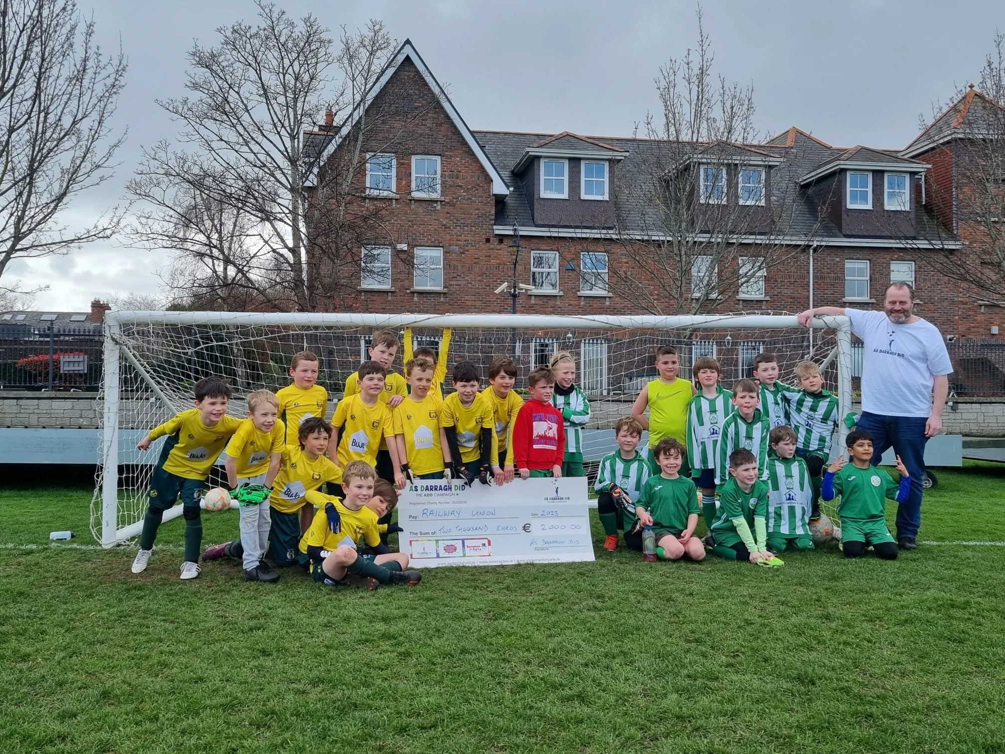 Receiving a grant cheque from As Darragh Did to finance a new set of goal posts at RUFC